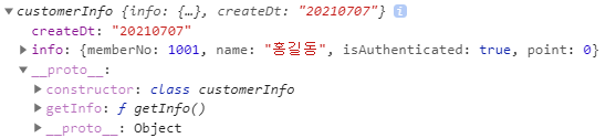 class customerInfo의 변수 info를 보시면 interface customer로 타입 명시했습니다.