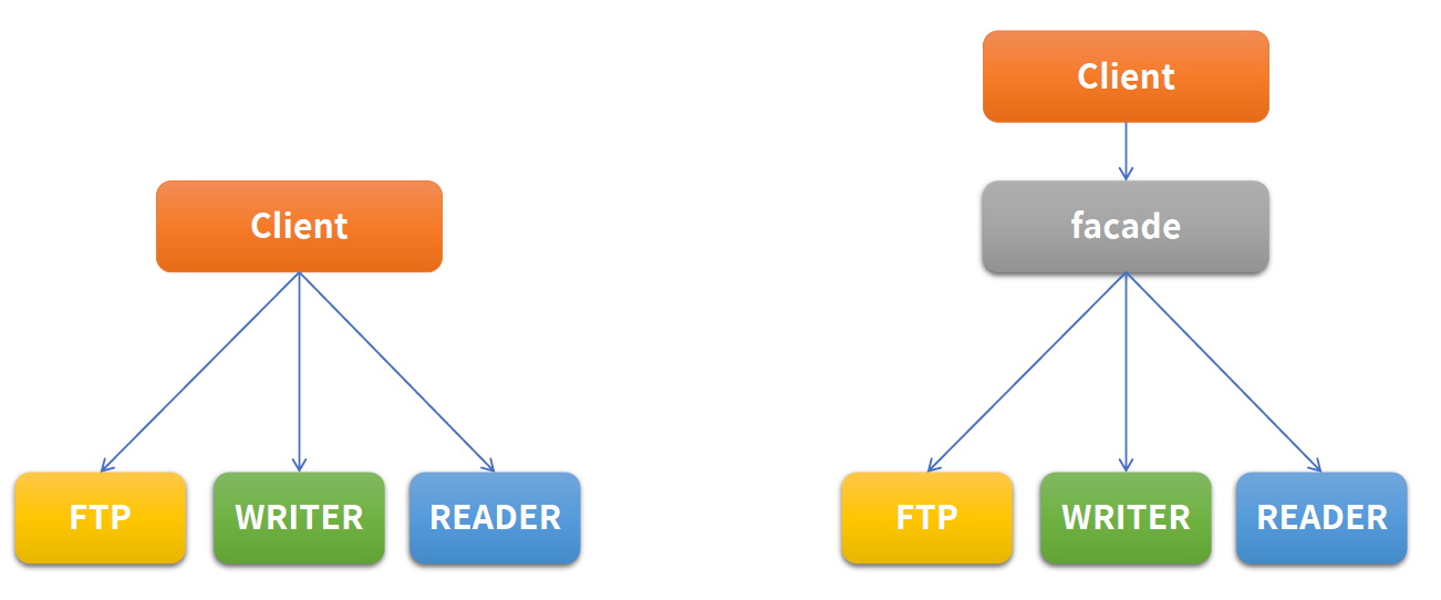 FtpProtocol, FileReader, FileWriter 등의 클래스로 객체를 생성하는 것이 아니라, SftpClient(파사드 클래스)를 통해서 인스턴스 객체를 생성하고 메소드를 호출합니다.